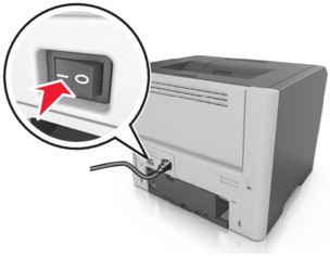 Schließen Sie das Netzkabel an den Drucker und an eine ordnungsgemäß geerdete Steckdose an und schalten Sie den Drucker ein.