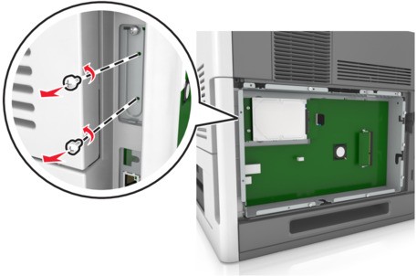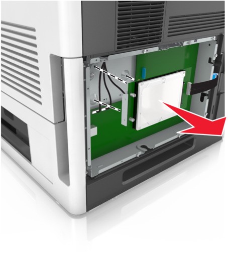 Entfernen Sie die Schrauben, mit denen die Druckerfestplatte befestigt ist.