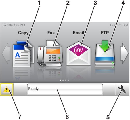 Drucker-IP-Adresse Beispiel: 123.123.123.123 | Die IP-Adresse Ihres Druckers befindet sich oben links auf dem Startbildschirm und wird in Form von vier durch Punkte getrennte Zahlengruppen angezeigt. Sie können die IP-Adresse verwenden, wenn Sie auf den Embedded Web Server zugreifen, um die Druckereinstellungen anzeigen zu lassen und zu konfigurieren, auch wenn Sie sich nicht in der Nähe des Druckers befinden. |