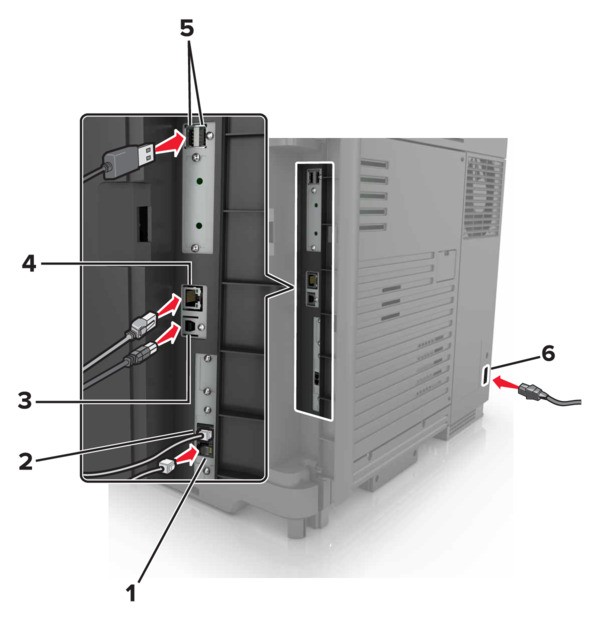 Starten Sie die Konfiguration Ihres Druckers durch das Anschließen der Kabel an die richtigen Anschlüsse und Ports.