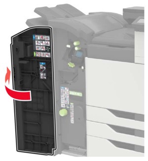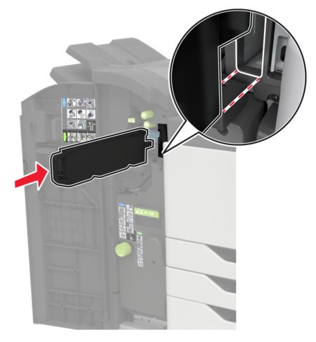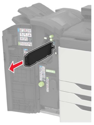 Entfernen Sie den Locherbehälter, in dem Reste von gelochtem Papier gesammelt werden, wenn dieser voll ist, um mit dem Lochen fortzufahren.