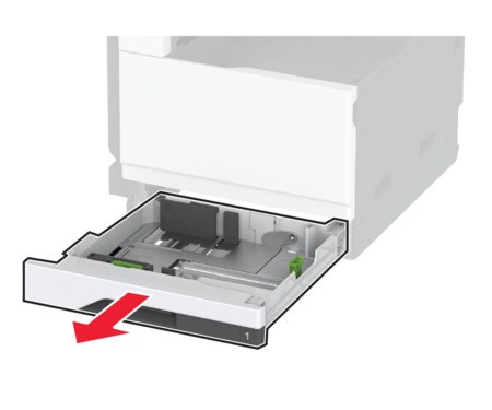 - Ziehen Sie das Fach heraus.Zur Vermeidung von Papierstaus nehmen Sie kein Fach heraus, während der Drucker arbeitet.