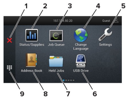 3 | Auftragswarteschlange | Zeigen Sie alle aktuellen Druckaufträge an. Sie können diese Einstellung auch aufrufen, indem Sie auf den oberen Bereich des Startbildschirm tippen. |