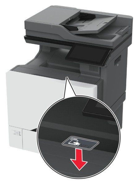 Wenn Sie nach der Einrichtung des Druckers auf die Steuerungsplatine zugreifen oder optionale Hardware oder Speichermedien installieren möchten, schalten Sie zunächst den Drucker aus, und ziehen Sie das Netzkabel aus der Steckdose, um das Risiko eines elektrischen Schlags zu vermeiden. Wenn andere Geräte an den Drucker angeschlossen sind, schalten Sie diese auch aus, und ziehen Sie alle Kabel vom Drucker ab.