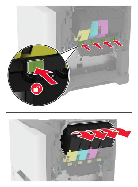 Nehmen Sie die Tonerkassetten heraus.