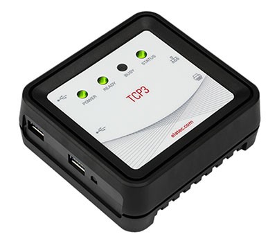 The Elatec TCP3 Adapter receives power either from an external 5Volt power source or from an Ethernet connection that supports power over ethernet. See the Technical Manual provided with the Elatec TCP3 for more details.