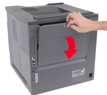 - Connect one end of the power cord to the printer.To avoid the risk of fire or electrical shock, connect the power cord to an appropriately rated and properly grounded electrical outlet that is near the product and easily accessible.