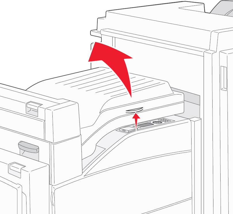 4 | Open Door F , if Door F is present. ![]() Device will only have a Door F if you have an installed finisher option. If you don’t have an installed finisher option, please skip to Step 7 . |