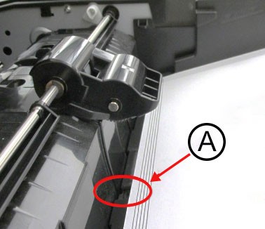 bottom pages of a stack sheet are not inserted far enough into the input tray, which does not cover the paper present sensor (A)
