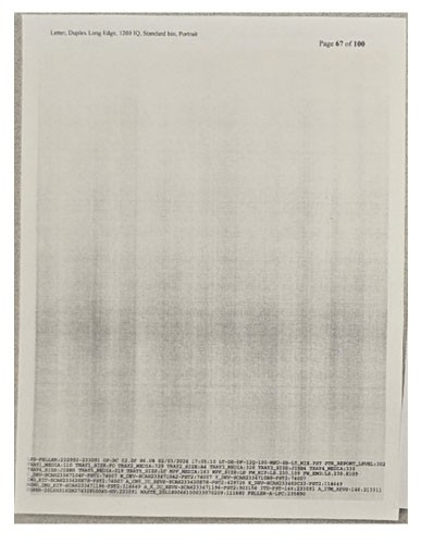 Sample images with banding (vertical and horizontal white lines), blurring, fuzziness, and light or faded prints: