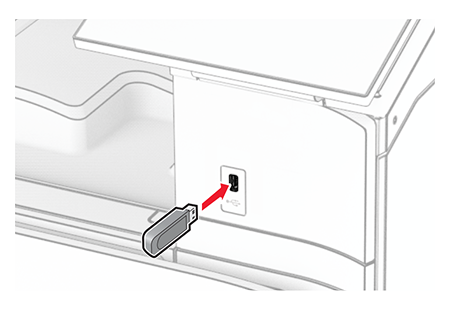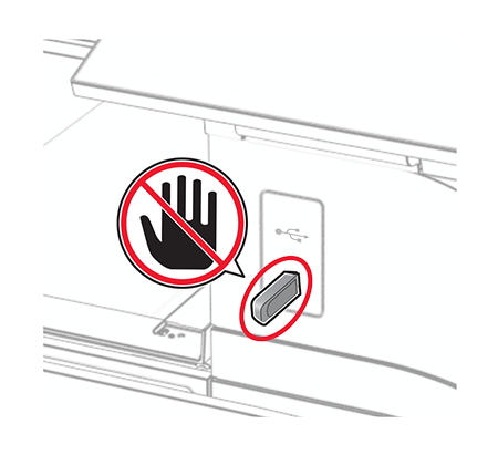 - Scan the document.To avoid loss of data or printer malfunction, do not touch the flash drive or the printer in the area shown while actively printing, reading, or writing from the memory device.