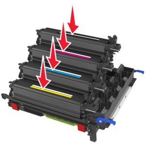 Do not touch the shiny photoconductor drum under the imaging kit. Doing so may affect the quality of future print jobs.