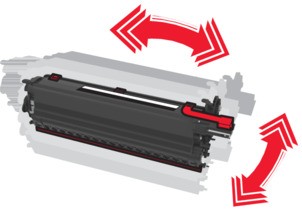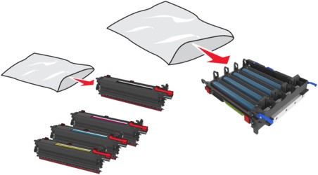 When replacing the black imaging kit, save the cyan, magenta, and yellow developer units. Dispose only the black developer unit.Gently shake the yellow, cyan, magenta, and black developer units side‑to‑side.
