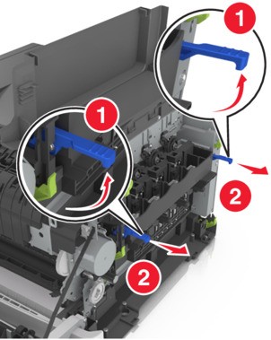 Lift the blue levers on the imaging kit, and then pull the imaging kit until it stops.