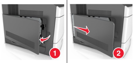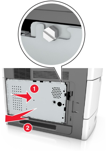 If you are accessing the controller board or installing optional hardware or memory devices sometime after setting up the printer, then turn the printer off, and unplug the power cord from the electrical outlet before continuing. If you have any other devices attached to the printer, then turn them off as well, and unplug any cables going into the printer.