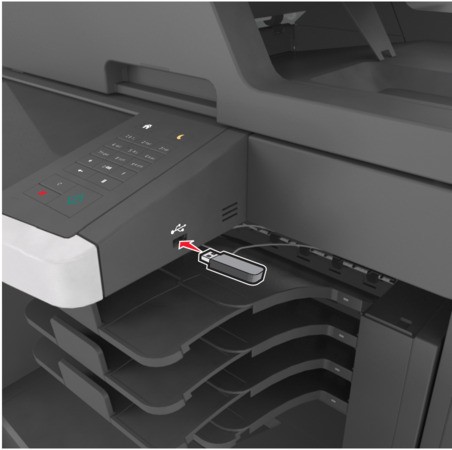 - If you insert the flash drive when the printer requires attention, such as when a jam has occurred, then the printer ignores the flash drive.