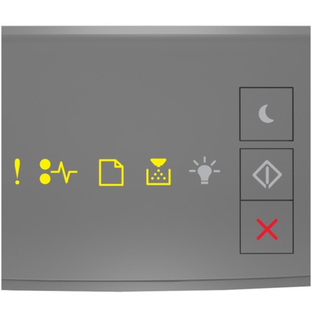 ‑ OnIf the light sequence matches the preceding light sequence, then remove the toner cartridge and install a supported one. For more information, see .Using genuine Lexmark parts and supplies