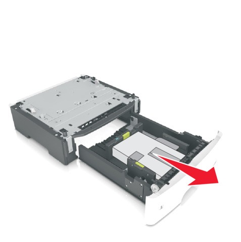 - To uninstall the optional trays, slide the latch on the right side of the printer toward the front of the printer until itclicksinto place, and then remove stacked trays one at a time from the top to the bottom.
