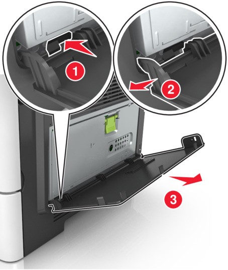 Lightly press the stop on the left side of the access door, and then slide the access door to remove it.