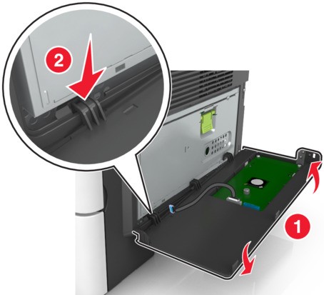 Close the ISP exterior cover.When the printer software and any hardware options are installed, it may be necessary to manually add the options in the printer driver to make them available for print jobs. For more information, see Adding available options in the print driver.
