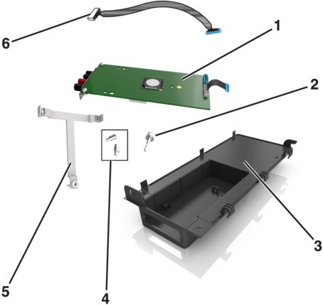 1ISP solution2Screw to attach the ISP to the bracket3ISP exterior cover4Screws to attach the ISP metal bracket to the printer cage5Plastic bracket6Long ISP cablePlace the plastic bracket inside the ISP exterior cover until itclicksinto place.