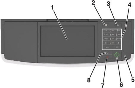 3 | Sleep button | Enable Sleep mode or Hibernate mode. Do the following to wake the printer from Sleep mode: