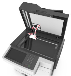 - Place a document facedown on the scanner glass in the corner with the green arrow.