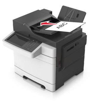 - Load the document into the ADF tray faceup, short edge first.