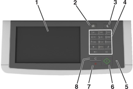 8 | Clear all / Reset button | Reset the default settings of a function, such as printing, copying, or e‑mailing. |