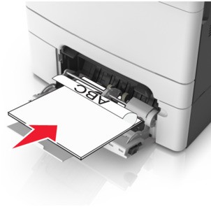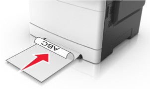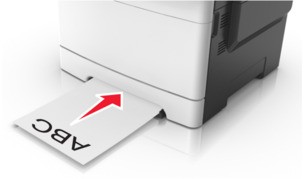 Two‑sidedFaceupLoad the sheet with the bottom edge entering the printer first.Multipurpose feeder