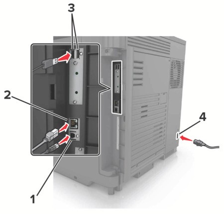 Start configuring your printer by connecting the cables to the correct ports and socket.