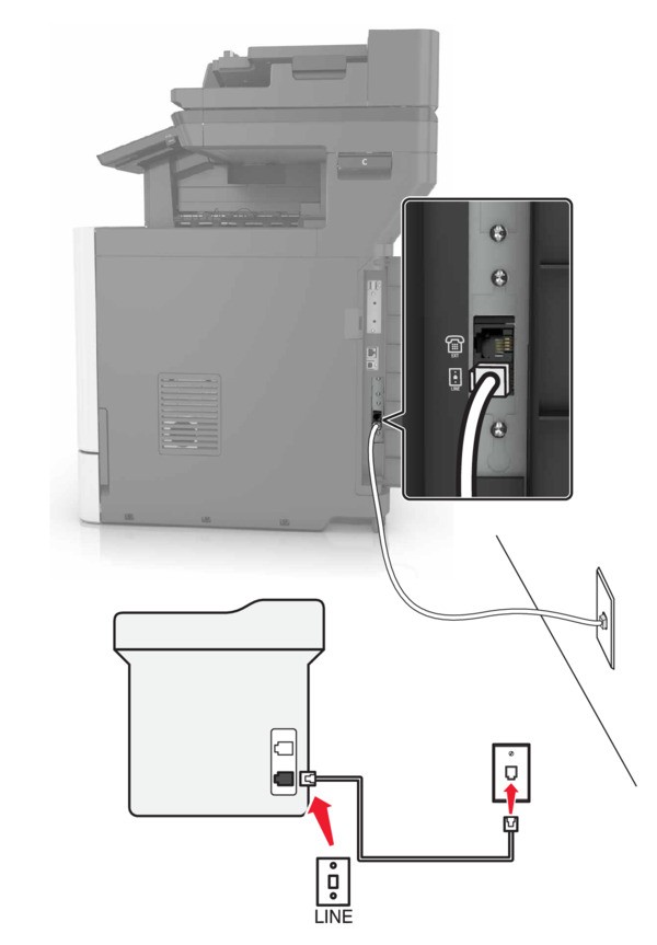 Connect your printer directly to an active telephone wall jack or share a line with an answering machine or voice mail service.