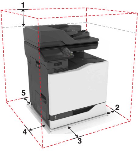 - Allow the following recommended amount of space around the printer for proper ventilation:
