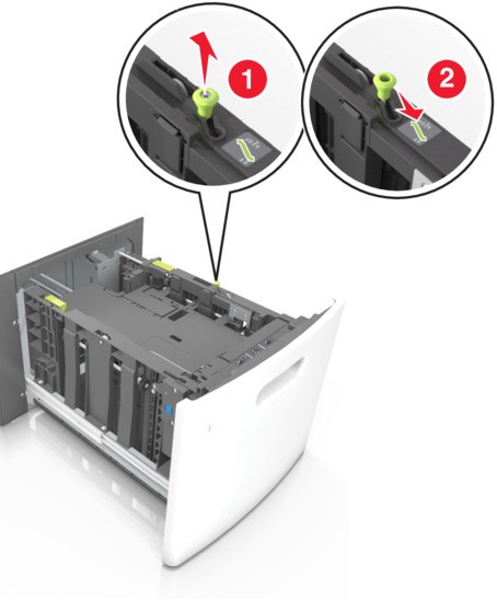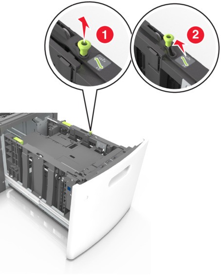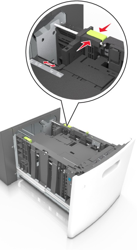 - Squeeze, and then slide the length guide to the correct position for the paper size you are loading.