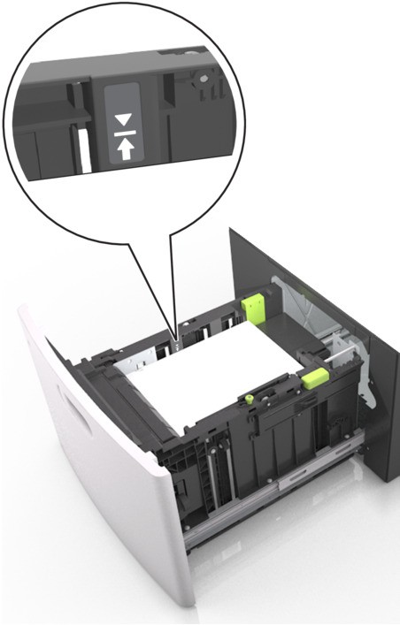 - From the printer control panel, set the paper size and paper type in the Paper menu to match the paper loaded in the tray.Set the correct paper size and type to avoid paper jams and print quality problems.