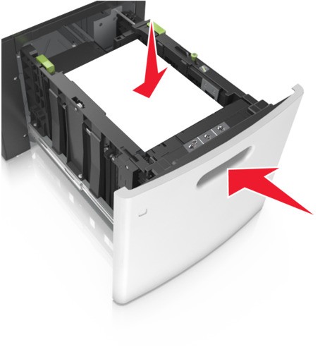 - Insert the tray.Press the paper stack down while inserting the tray.
