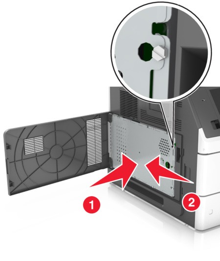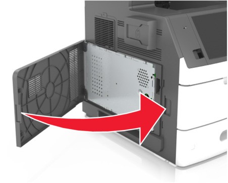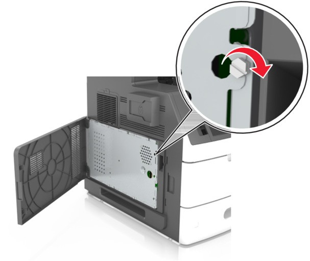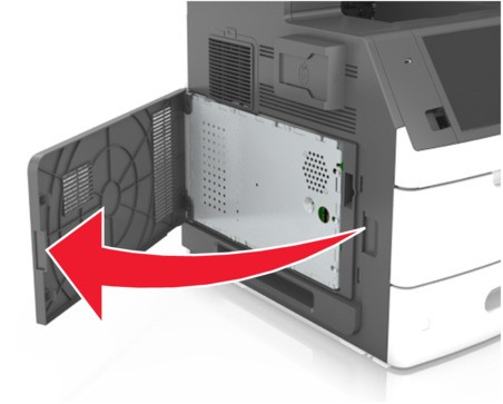 If you are accessing the controller board or installing optional hardware or memory devices sometime after setting up the printer, then turn the printer off, and unplug the power cord from the electrical outlet before continuing. If you have any other devices attached to the printer, then turn them off as well, and unplug any cables going into the printer.