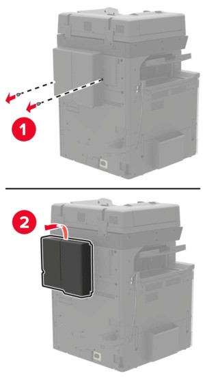 Attach the shield, and then attach the access cover.Attach the connector cover.If you removed a filter cover, then attach the cover.Connect the power cord to the electrical outlet, and then turn on the printer.To avoid the risk of fire or electrical shock, connect the power cord to an appropriately rated and properly grounded electrical outlet that is near the product and easily accessible.