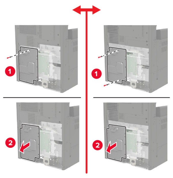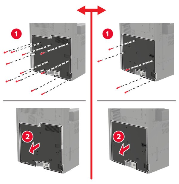 3. Using the screwdriver stored inside door A, remove the connector cover from the rear of the printer.