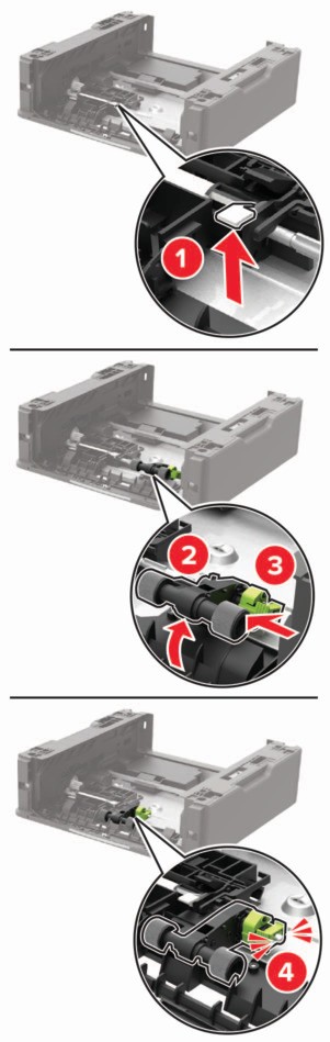 Unpack the new pick roller assembly.Insert the new pick roller assembly.