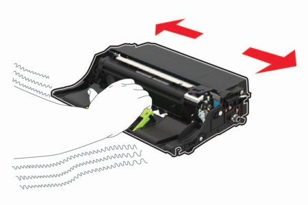 - Unpack the new imaging unit, and then shake it three times to redistribute the toner.