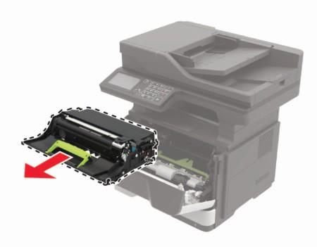 Do not expose the imaging unit to direct light for more than 10 minutes. Extended exposure to light may cause print quality problems.Do not touch the photoconductor drum. Doing so may affect the quality of future print jobs.