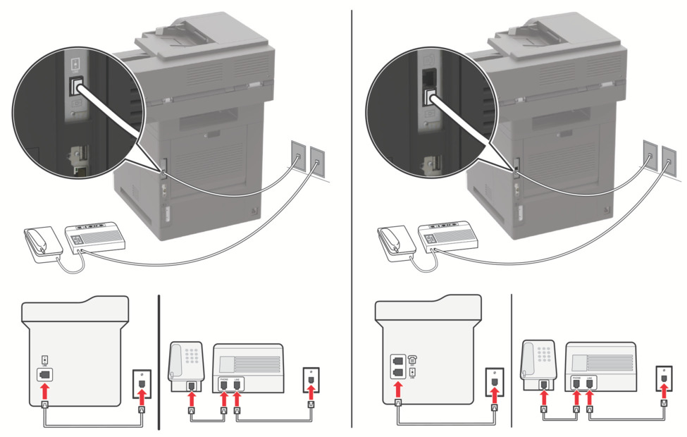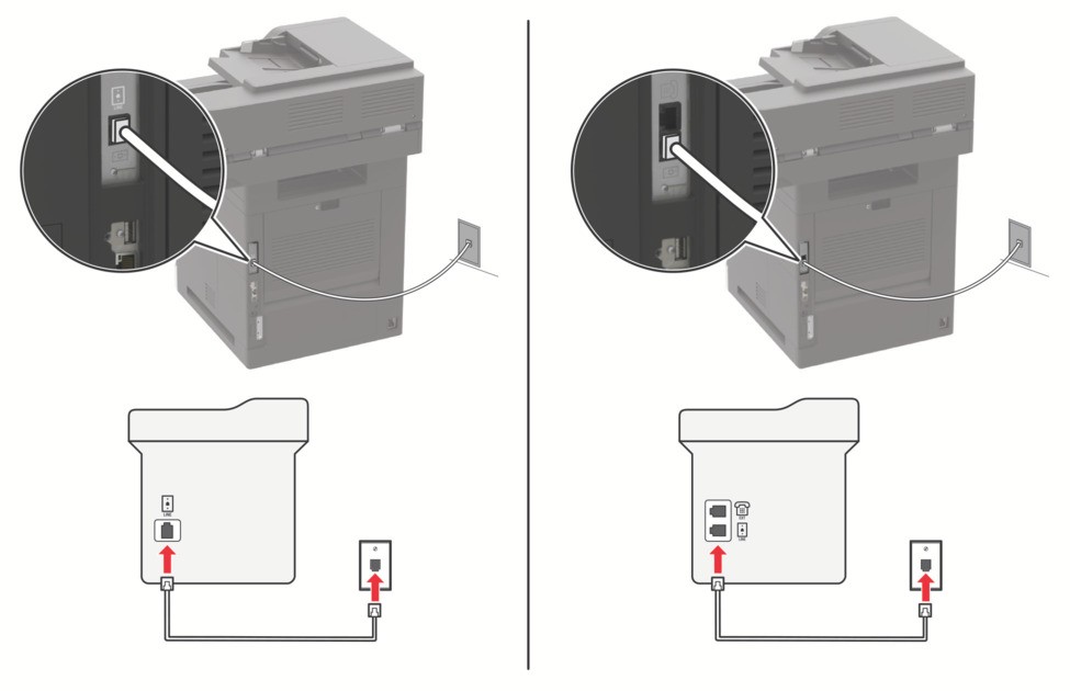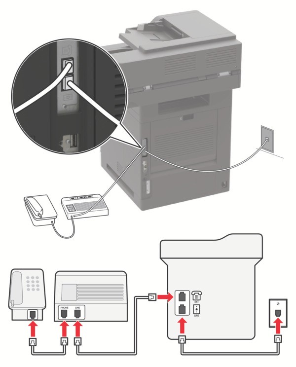 Connect your printer directly to an active telephone wall jack or share a line with an answering machine.