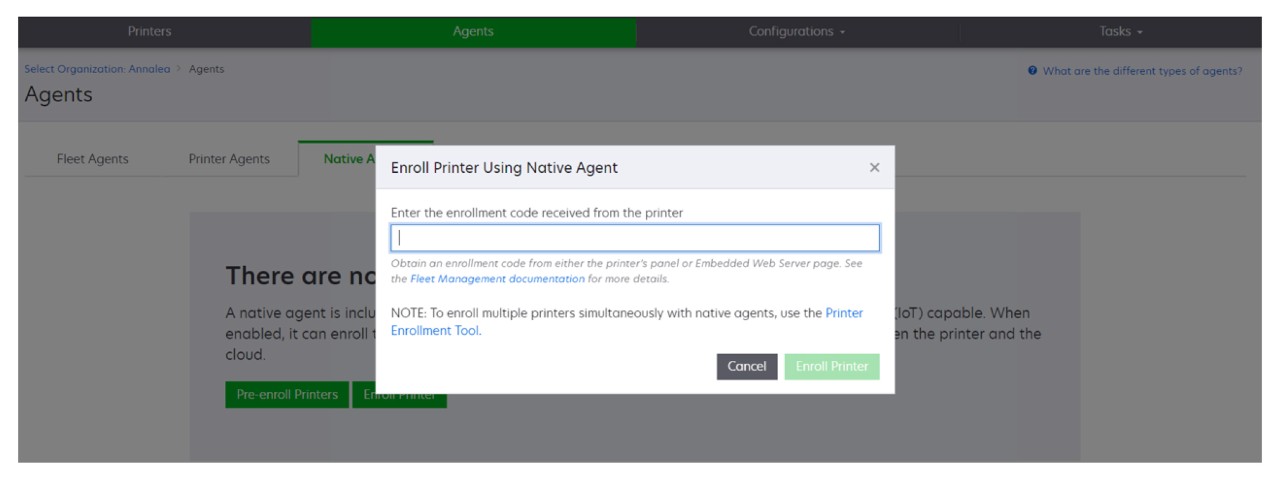 - ClickAgents>Native Agents>Enroll Printer>use thePrinter Enrollment Tool.