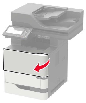 - Open door A.To prevent damage from electrostatic discharge, touch any exposed metal frame of the printer before accessing or touching interior areas of the printer.