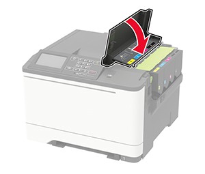 - Open door B.To prevent damage from electrostatic discharge, touch any exposed metal frame of the printer before accessing or touching interior areas of the printer.