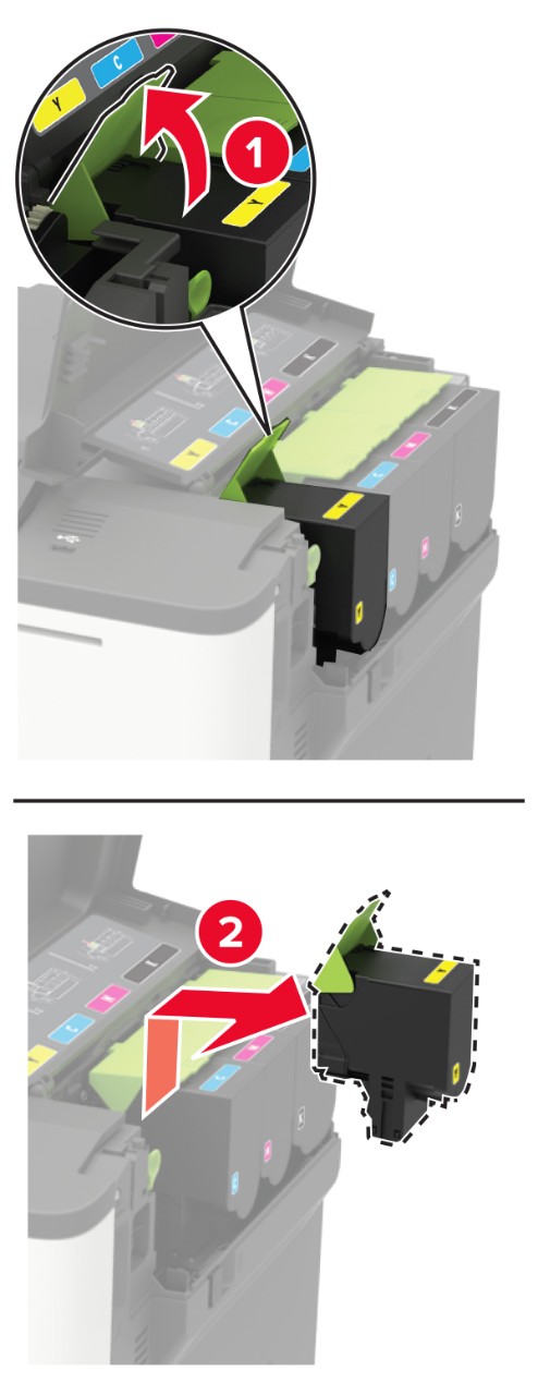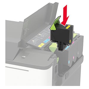 Unpack the new toner cartridge.Insert the new toner cartridge.