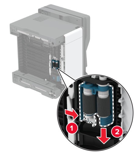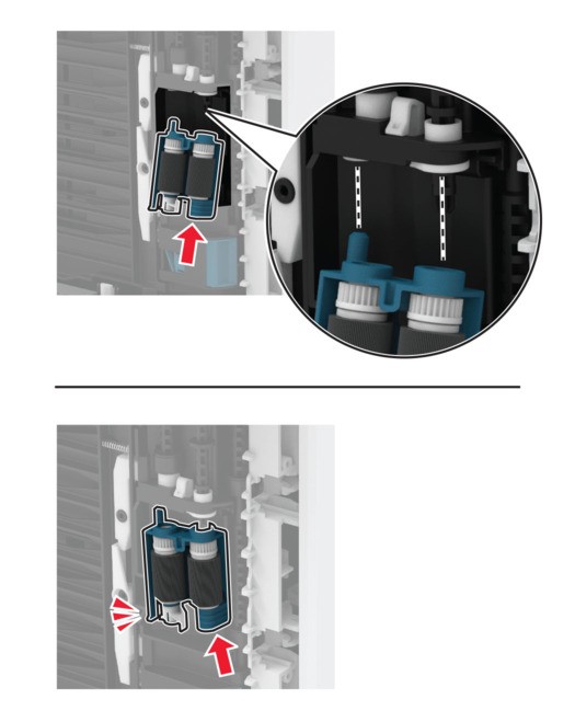 Apply isopropyl alcohol to a soft, lint-free cloth, and then wipe the pick roller assembly.Insert the pick roller assembly.