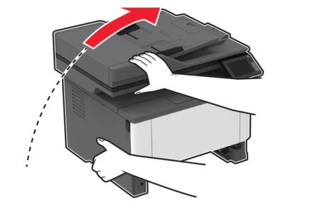 - Turn off the printer.Unplug the power cord from the electrical outlet, and then from the printer.Open the front door.