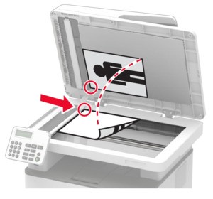 • Use the scanner glass for single‑page documents, book pages, small items (such as postcards or photos), transparencies, photo paper, or thin media (such as magazine clippings).